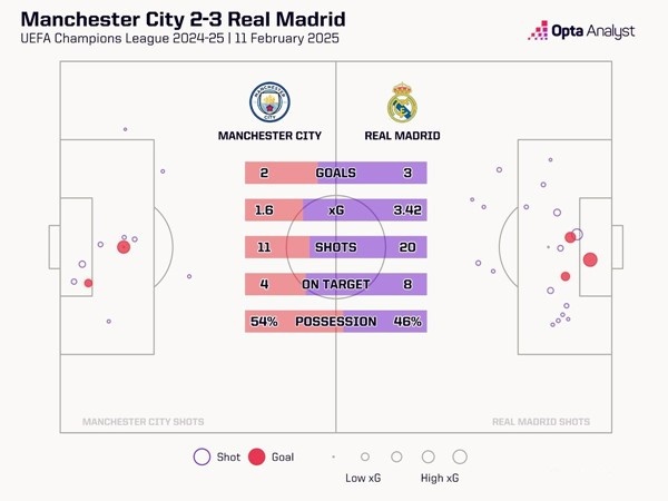 自己射門11次,對手射門20次,瓜迪奧拉堆積后衛(wèi)的策略完全失敗了。