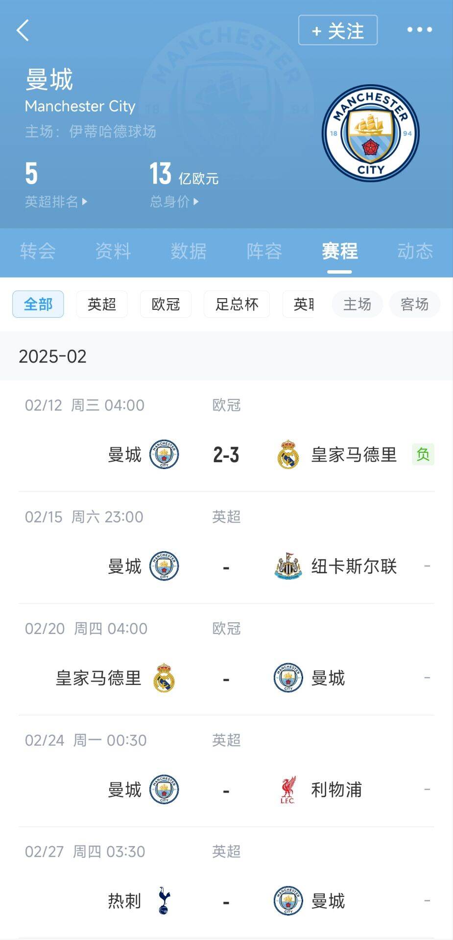 02月12日訊 曼城在歐冠附加賽的首回合2-3不敵皇馬,藍(lán)月亮的魔鬼賽程首戰(zhàn)告負(fù)。