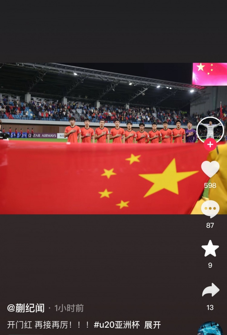 2月13日訊 今天,蒯紀(jì)聞更新社媒,慶祝國青在U20亞洲杯取得開門紅,并鼓勵球隊繼續(xù)前進(jìn)。