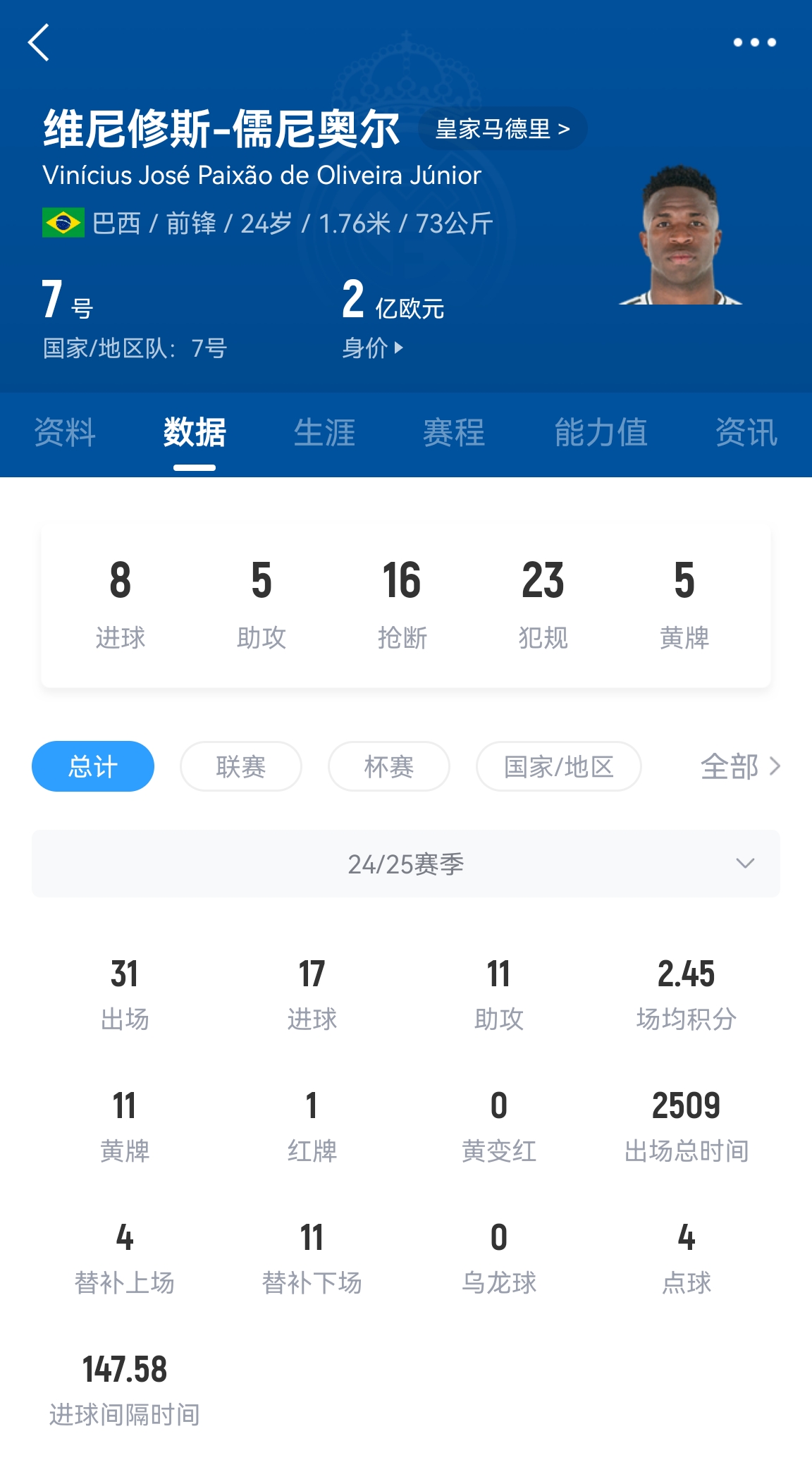 2月12日,維尼修斯在逆轉(zhuǎn)曼城賽后采訪稱(chēng)不知道沙特報(bào)價(jià),希望留在皇馬很長(zhǎng)時(shí)間。