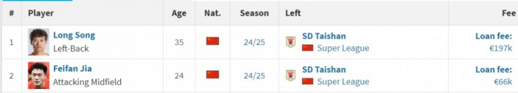 據(jù)《轉(zhuǎn)會市場》消息顯示,宋龍的租借費用為19.7萬歐元,約合人民幣150萬元。賈非凡的租借費用為6.6萬歐元,約合人民幣50萬元。