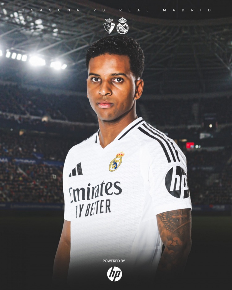 皇馬官方社媒發(fā)布了為此役制作的海報(bào),隊(duì)內(nèi)前鋒羅德里戈單人出鏡。