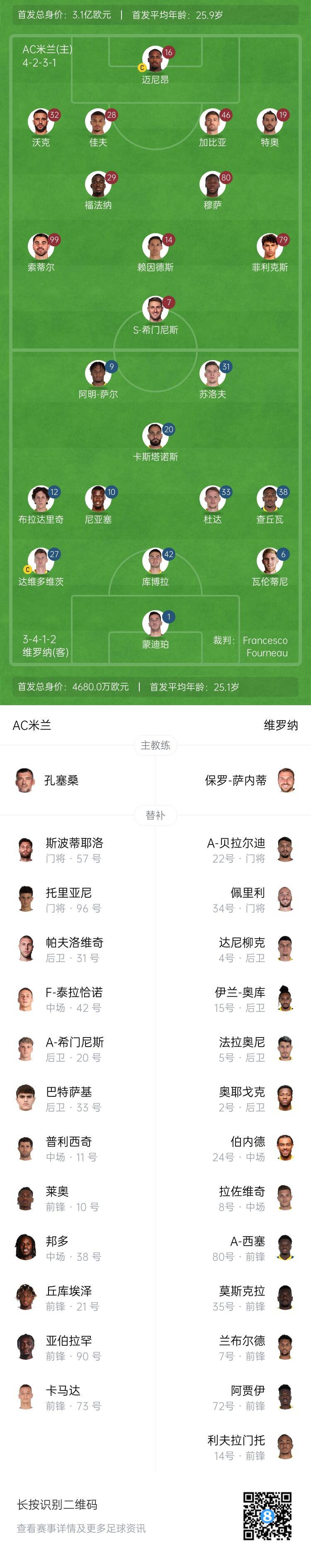 2月16日訊 意甲第25輪,AC米蘭主場(chǎng)對(duì)陣維羅納。賽前,官方公布了本場(chǎng)的首發(fā)名單。