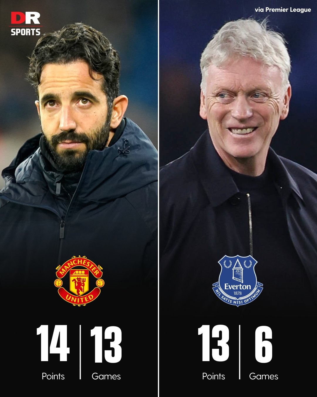 千古奇冤!莫耶斯帶埃弗頓6輪狂攬13分,阿莫林執(zhí)教曼聯(lián)13場(chǎng)14分