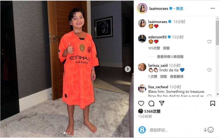 2月16日訊 英超第25輪比賽,埃德森完成零封+送出助攻,幫助曼城主場(chǎng)4-0擊敗紐卡。埃德森賽后將球衣送給了自己的兒子,埃德森的妻子萊斯更新社媒動(dòng)態(tài),曬出兒子身穿球衣的照片。 標(biāo)簽: 足球 英超 曼城