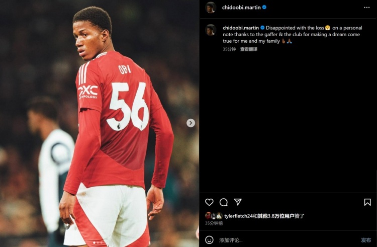 2月17日訊 英超本輪焦點(diǎn)戰(zhàn)中,曼聯(lián)0-1不敵熱刺。比賽尾聲階段,小將奧比-馬丁替補(bǔ)登場。賽后,他更新了社媒紀(jì)念自己的曼聯(lián)一線隊(duì)首秀。