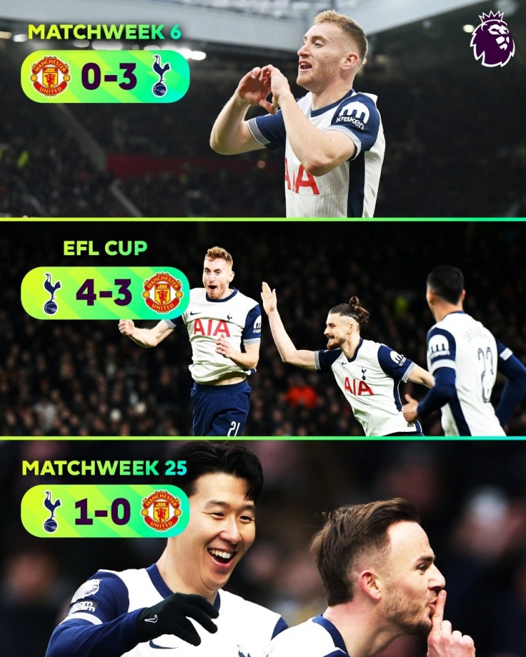 2月17日訊 熱刺在本輪英超主場1-0擊敗曼聯(lián),延續(xù)本賽季對曼聯(lián)的出色戰(zhàn)績。